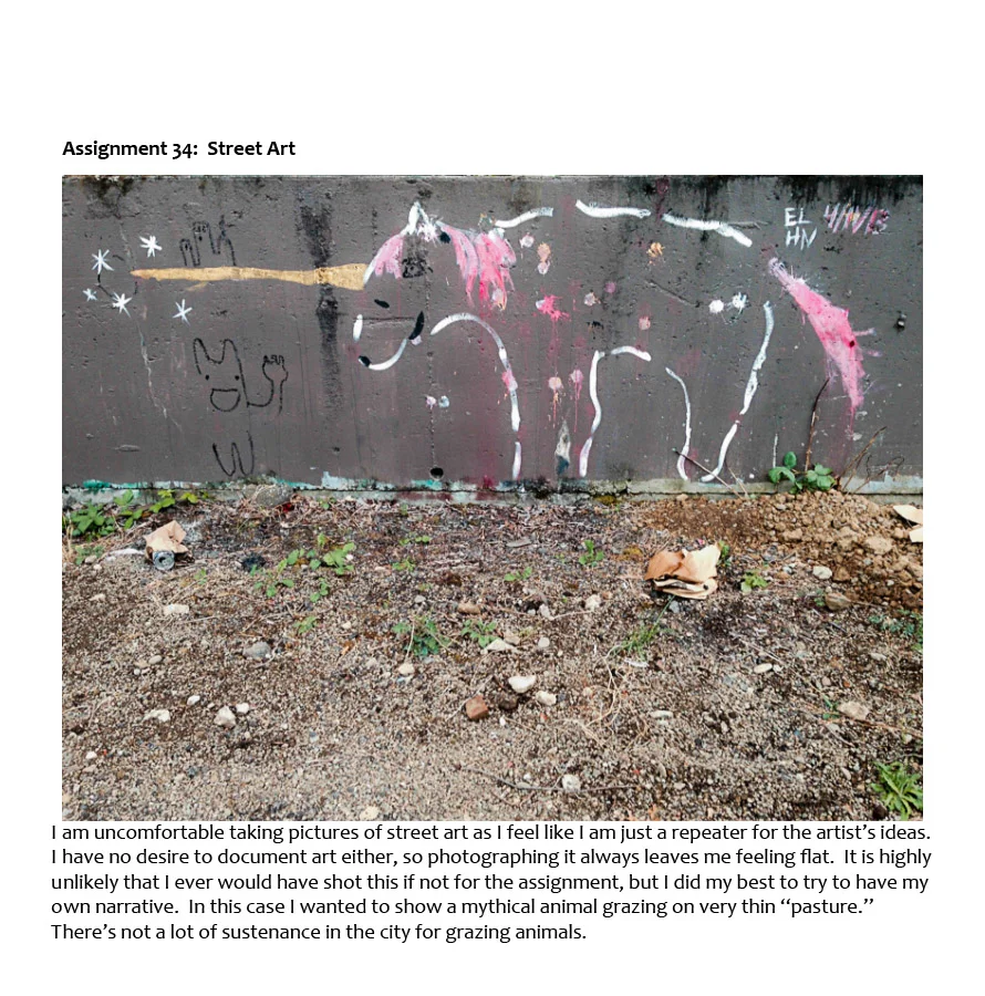 The street art assignment was not one of my favorites to say the least. I always feel like taking pictures of other peoples' art is akin to claiming their work as my own. In the times that I have photographed other peoples' creations (which are few), I have always tried to add some other element of relevance to the photo.
